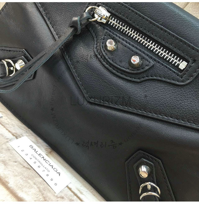 -발렌시아가 엠보싱 가죽 라벨을 부착한 내부 지퍼 포켓