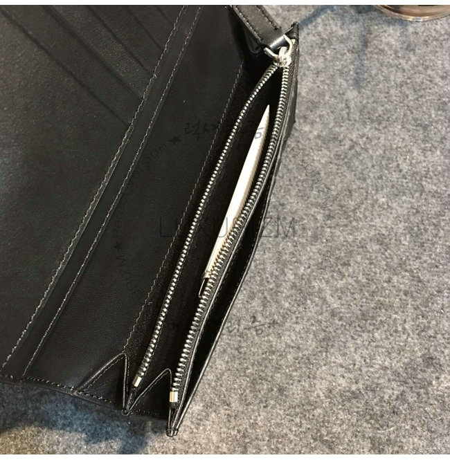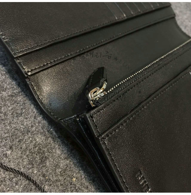 같은 계열 색상의 스티치 디테일과 스모크 체크 패턴이 돋보이는 장지갑