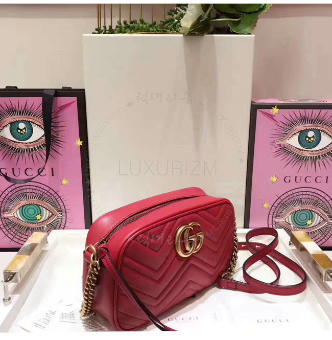 [스페셜오더]GUCCI-447632 6433 구찌 GG Marmont 레드 스몰 소프트 스트럭처드 체인 숄더백