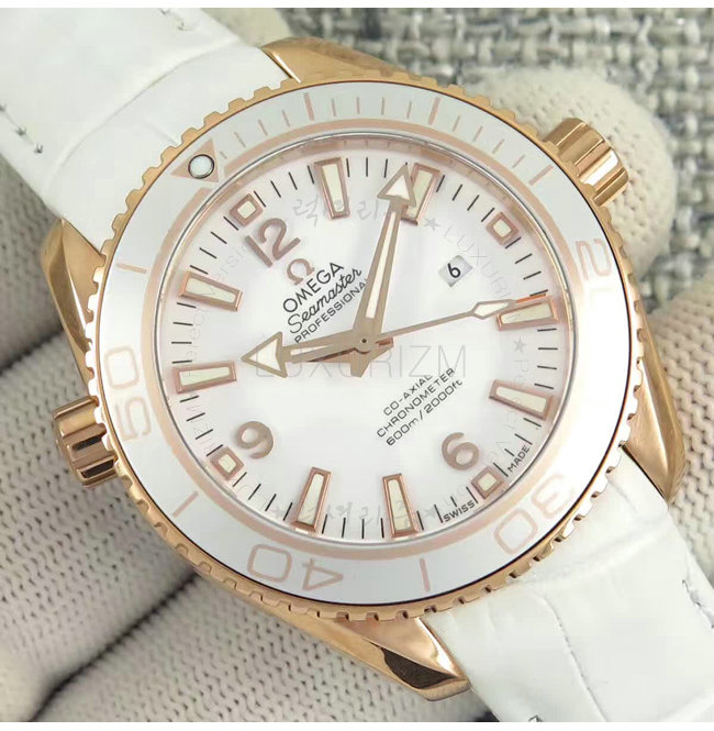 오메가 씨마스터 플래닛 오션600M세라골드 화이트 플래닛 생모리츠를