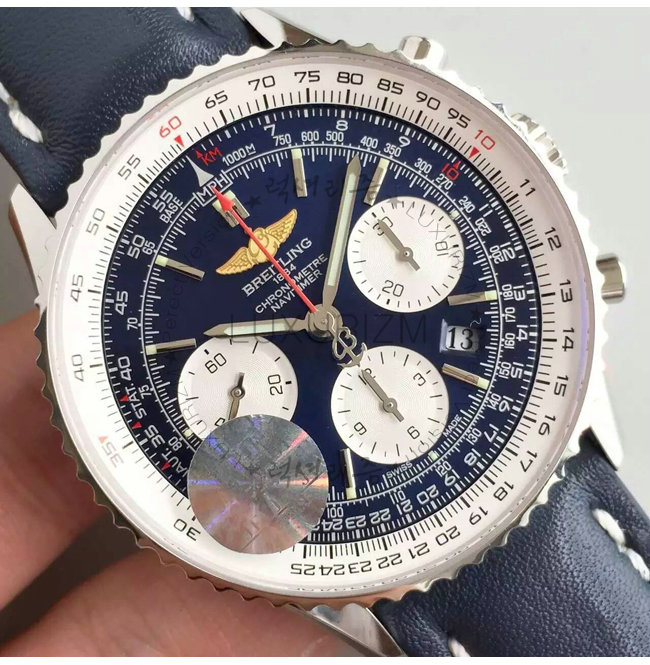 [스페셜오더]BREITLING-브라이틀링 내비타이머 스틸 블랙다이얼/네이비가죽스트랩 워치 43mm