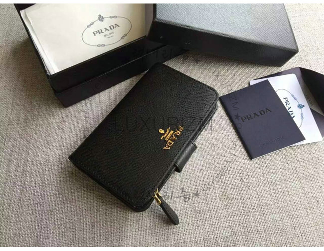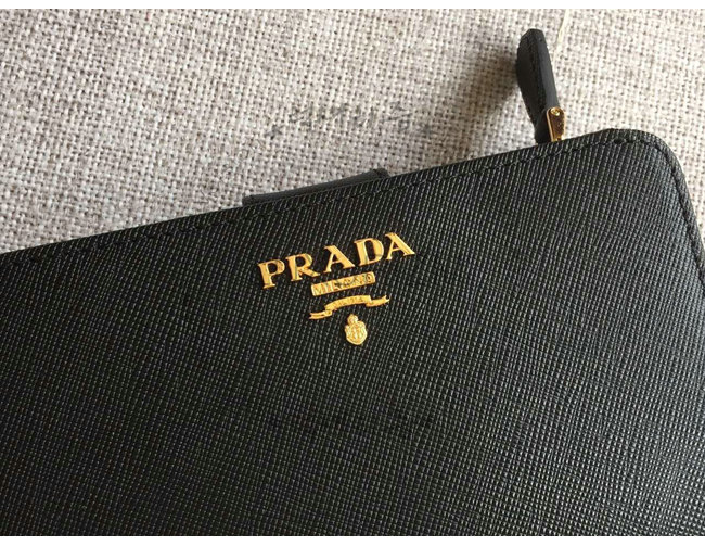 [스페셜오더]PRADA-1ML225 프라다 사피아노 메탈릭 골드 가죽 지갑 블랙