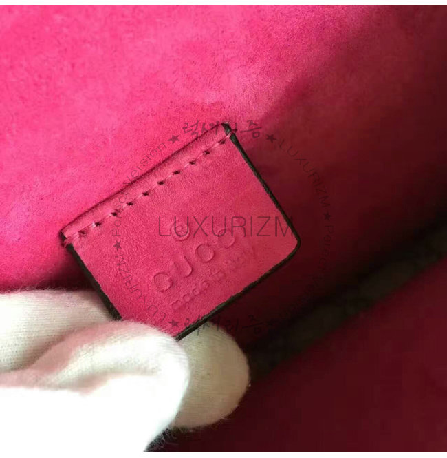 GG 수프림 캔버스. 친환경 소재 핑크색 스웨이드 디테일