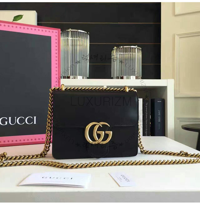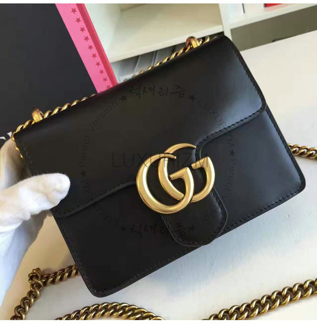 [스페셜오더]GUCCI-431384 1000 GG 마몽 스몰 사이즈 스트럭처드 체인 숄더백 블랙