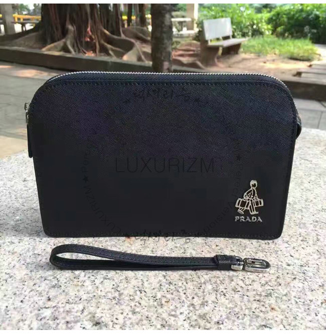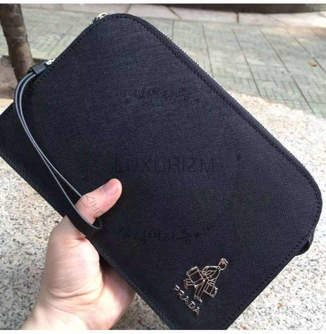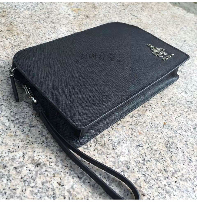 PRADA-VR0056 프라다 사피아노 가죽 스트랩 클러치 블랙