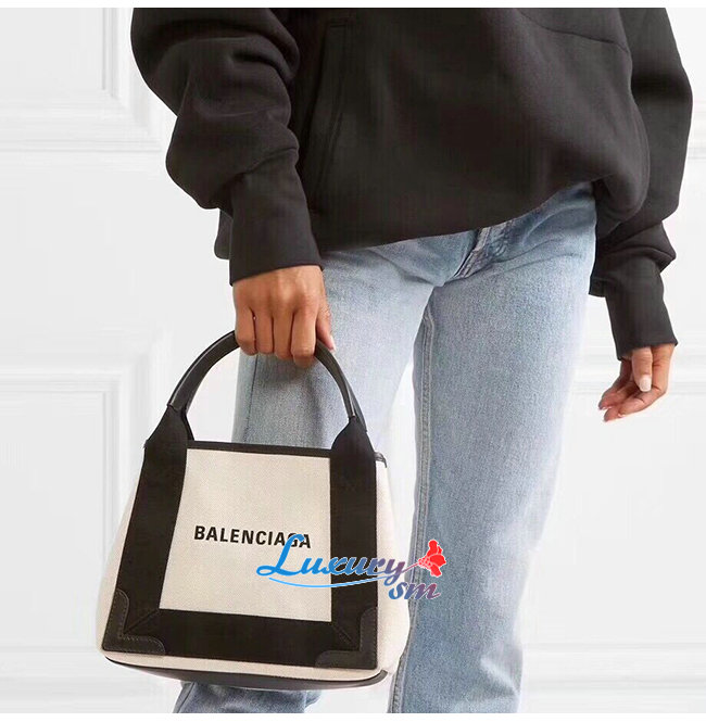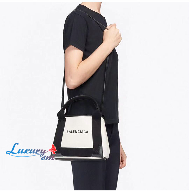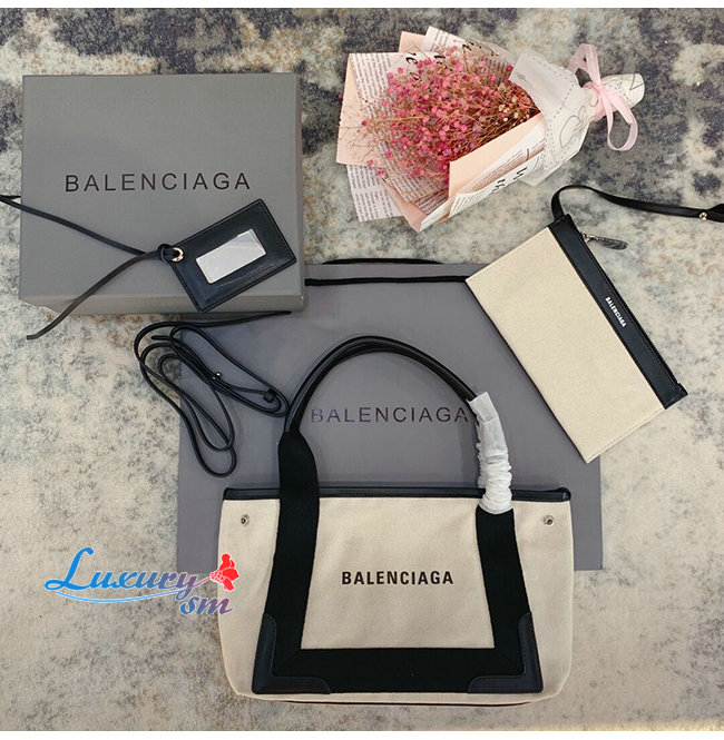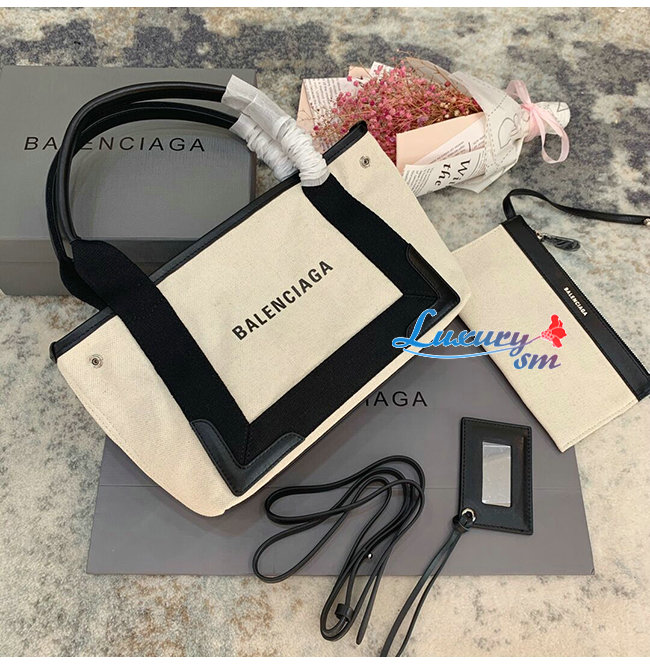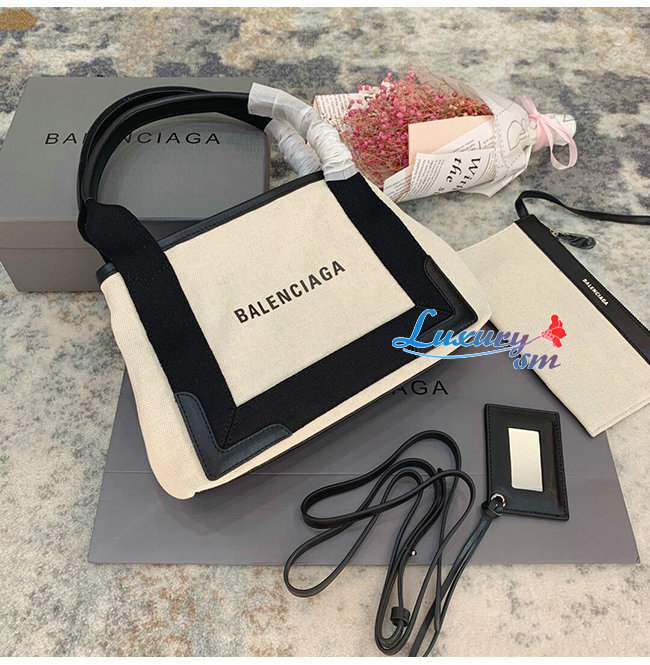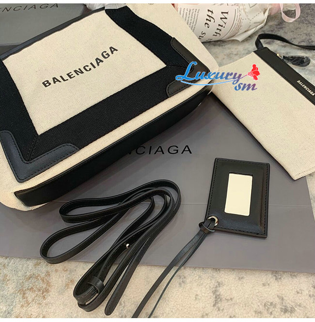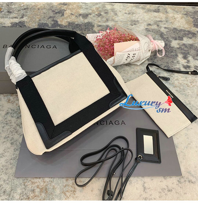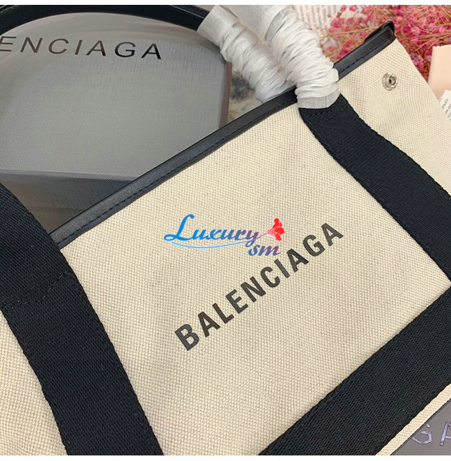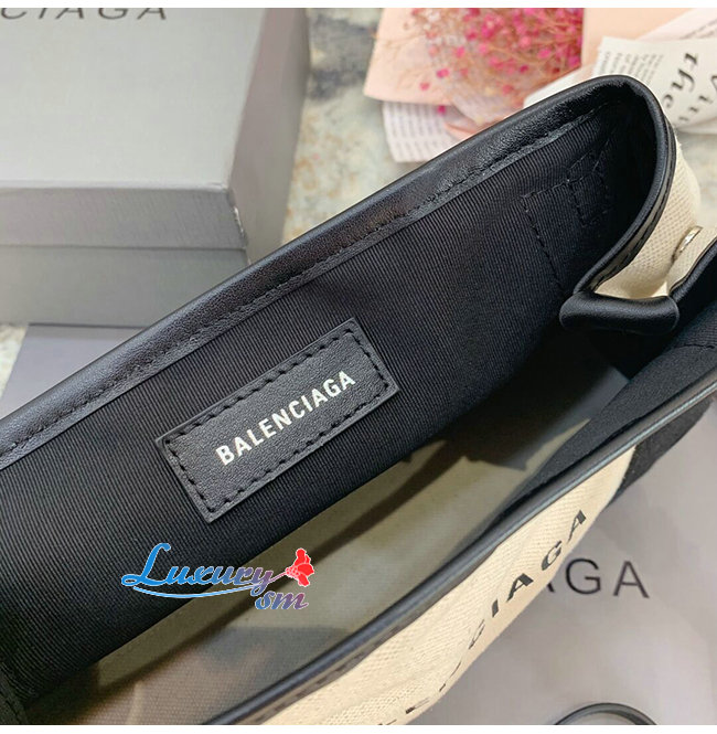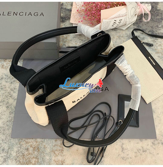BALENCIAGA-130103 발렌시아가 네이비 코튼 캔버스 카바스 XS 크로스 토트백 내츄럴/블랙
