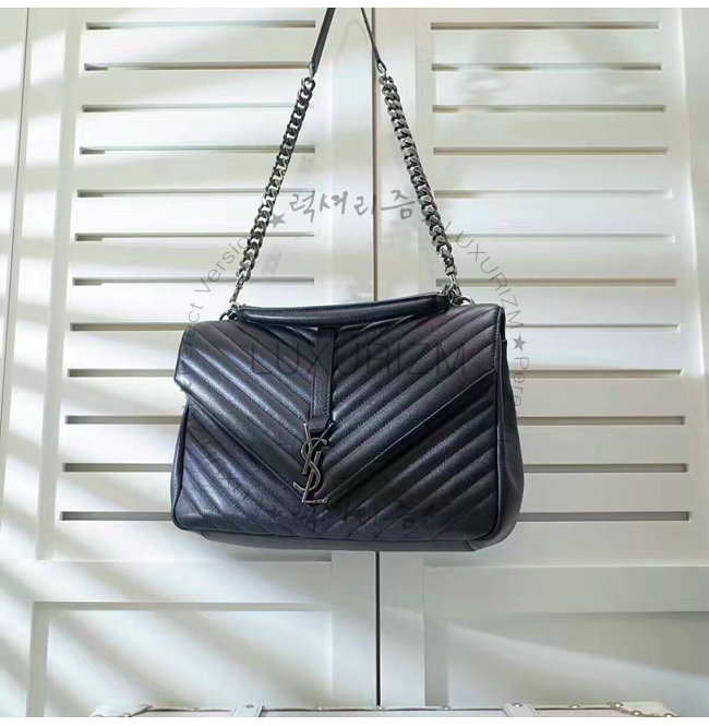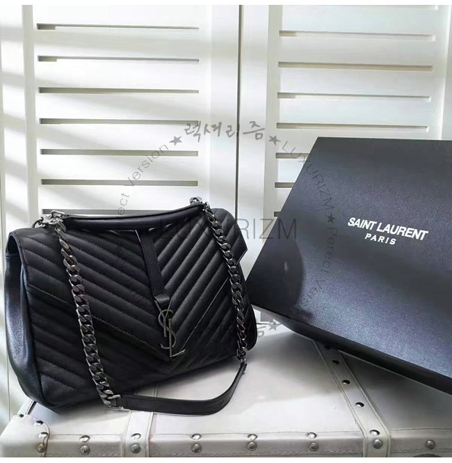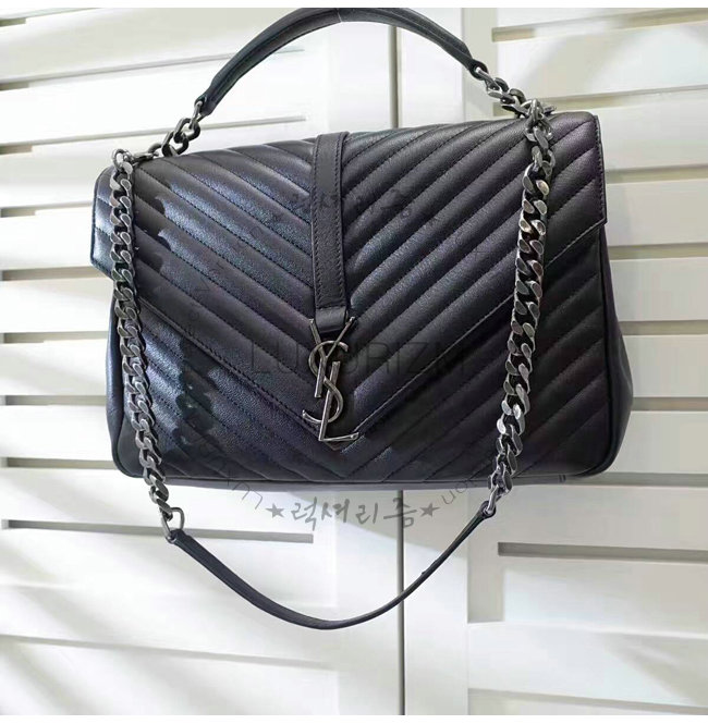 [스페셜오더]SAINT LAURENT-392738 생 로랑 블랙 마틀라세 가죽 클래식 은장 라지 모노그램 생 로랑 컬리지 백