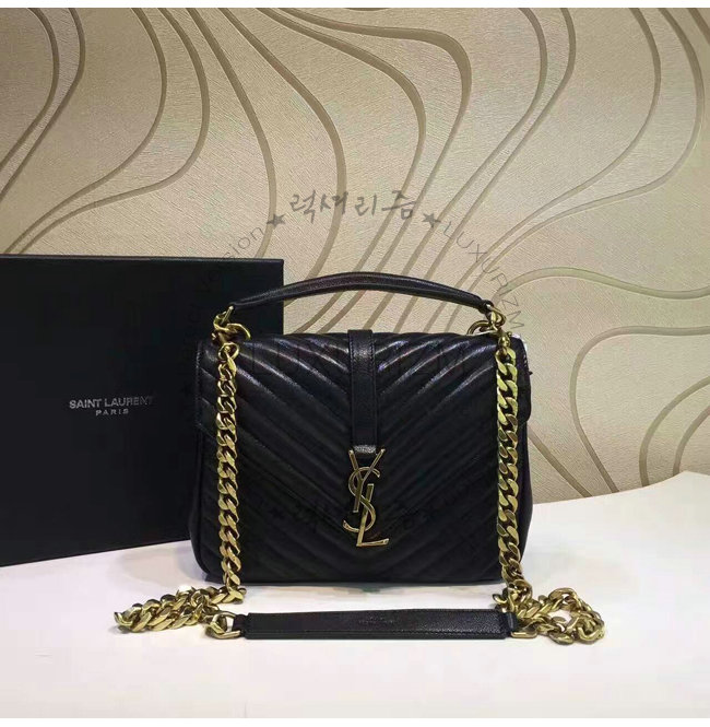 [스페셜오더]SAINT LAURENT-428056 생 로랑 블랙 마틀라세 가죽 클래식 금장 미디엄 모노그램 생 로랑 컬리지 백