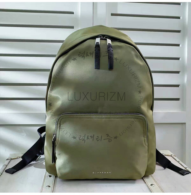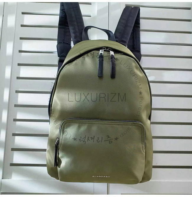 BURBERRY-40161 버버리 가죽 트리밍 나일론 백팩 캔버스 그린