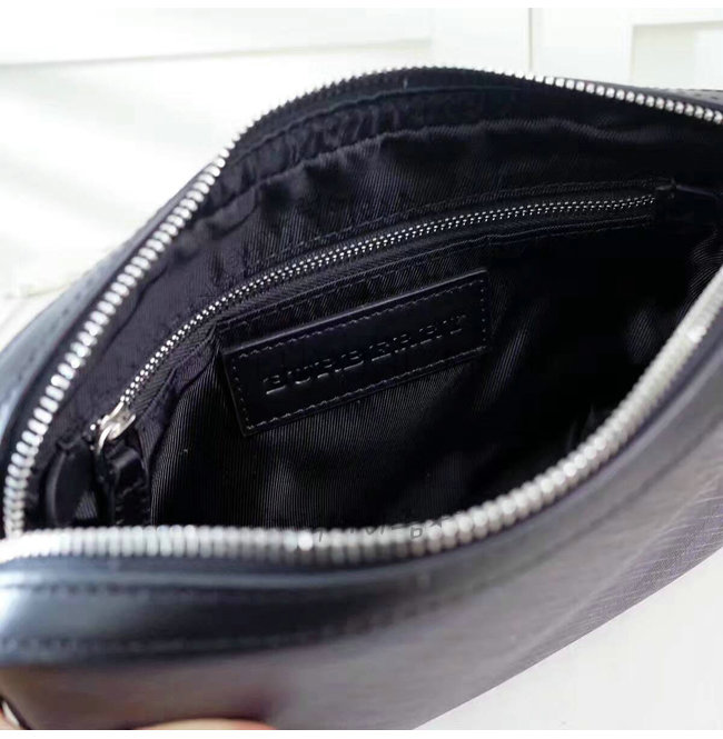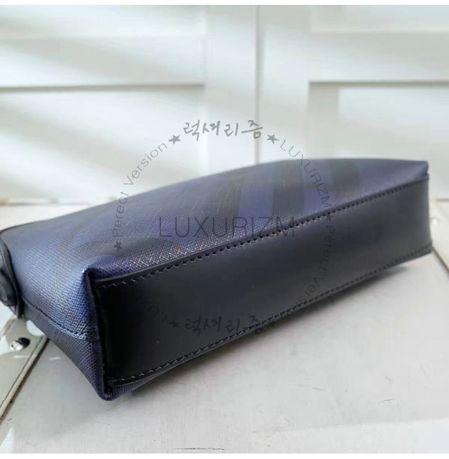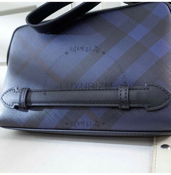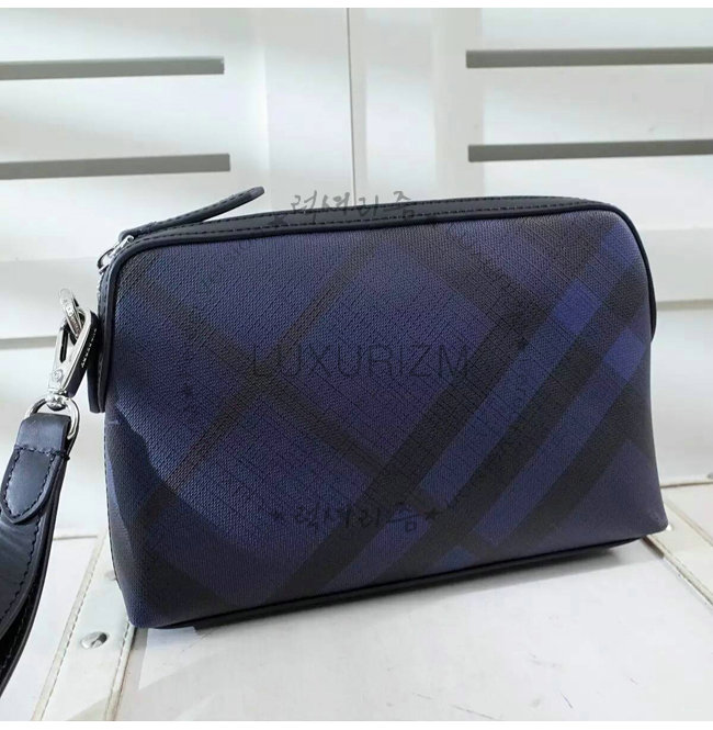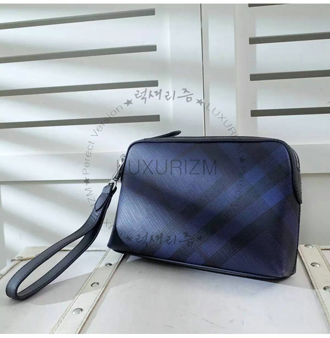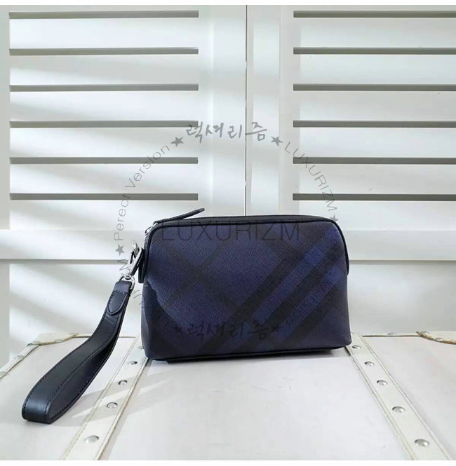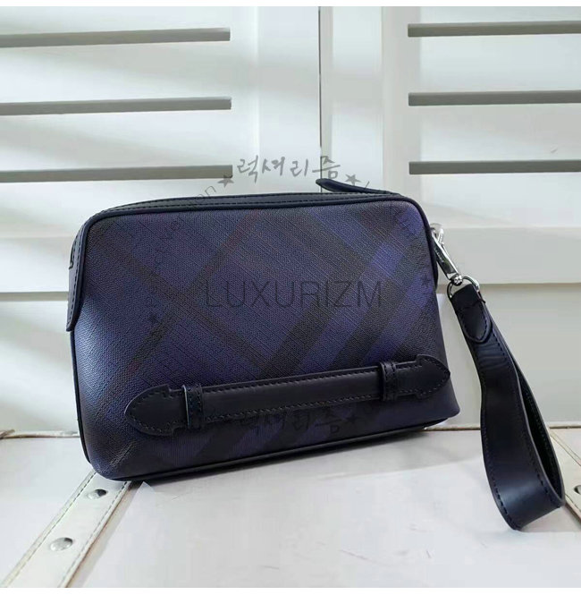 BURBERRY-64552 버버리 가죽 트리밍 런던 체크 파우치 네이비/블랙