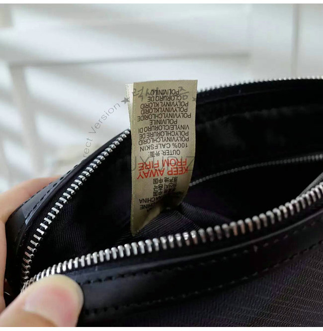 BURBERRY-64552 버버리 가죽 트리밍 런던 체크 파우치 초콜릿/블랙