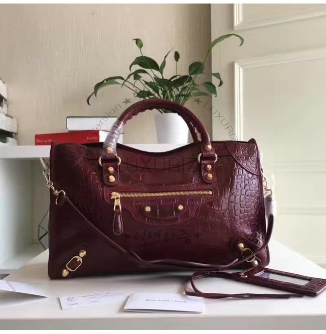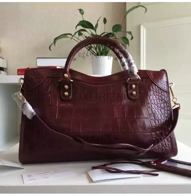 #BALENCIAGA-11522 발렌시아가 크로커다일 효과 미디엄 자이언츠 12 골드 시티 와인 럭셔리 얼터너티브 카피몰