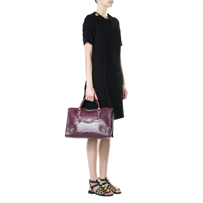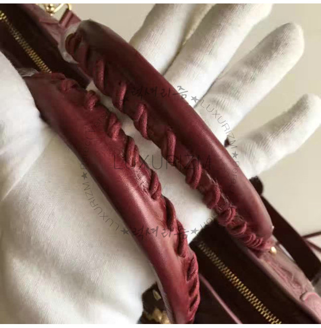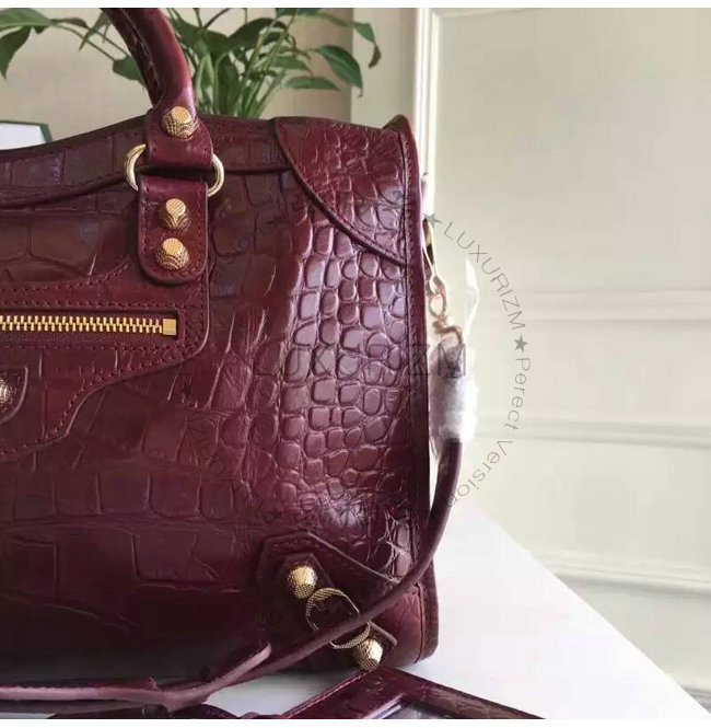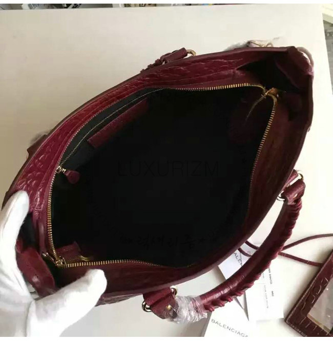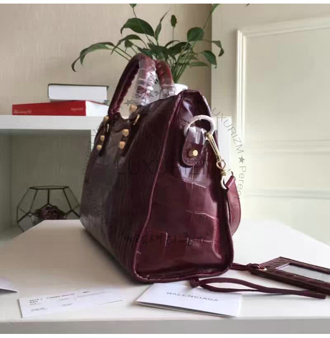 BALENCIAGA-11522 발렌시아가 크로커다일 효과 미디엄 자이언츠 12 골드 시티 와인