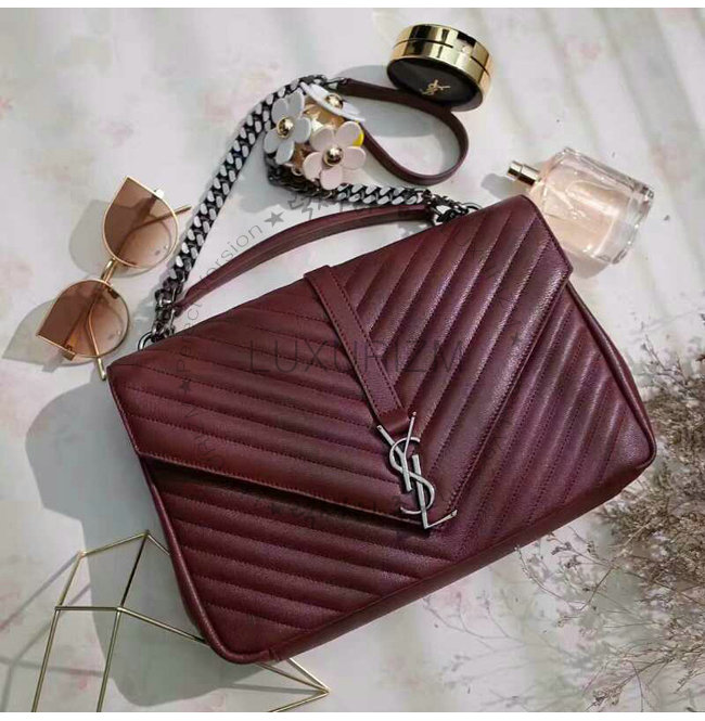 #홍콩 럭셔리즘 스페셜오더 SAINT LAURENT-로랑 다크 레드 클래식 은장 라지 모노그램 생 로랑 컬리지 백 완벽재현한 스폐셜급 상품입니다.