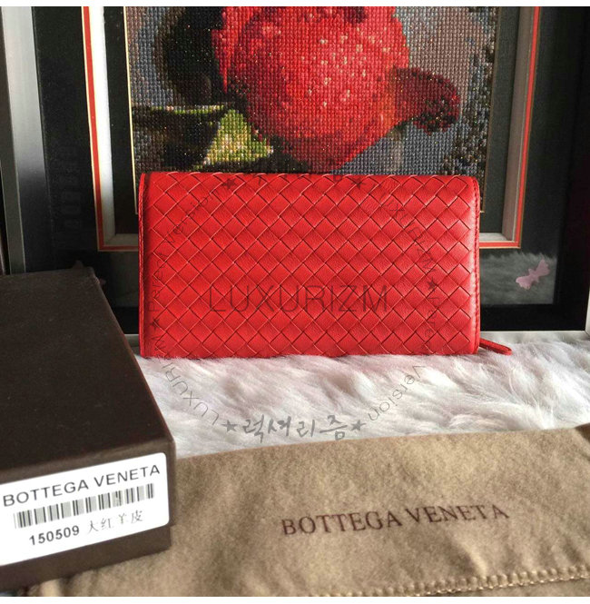 #홍콩명품 이미테이션 여성지갑 전문 쇼핑몰by럭셔리즘 BOTTEGA VENETA-보테가 베네타 차이나 레드 인트레치아토 나파 콘티넨탈 지갑