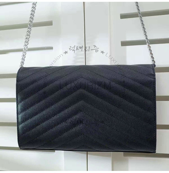 [스페셜오더]SAINT LAURENT-377828 생로랑 블랙 마틀라세가죽 은장 모노그램 체인숄더백