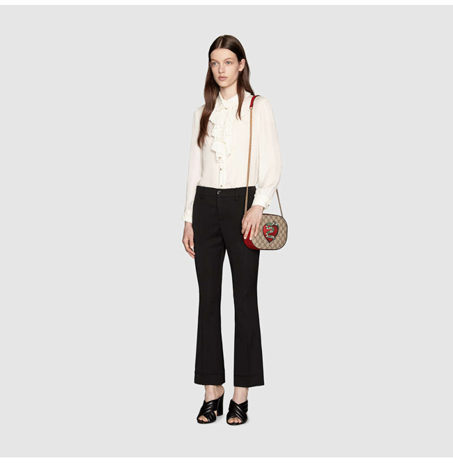 디테일의 GG 수프림. 킹스네이크 하트 및 플라워 자수 아플리케.