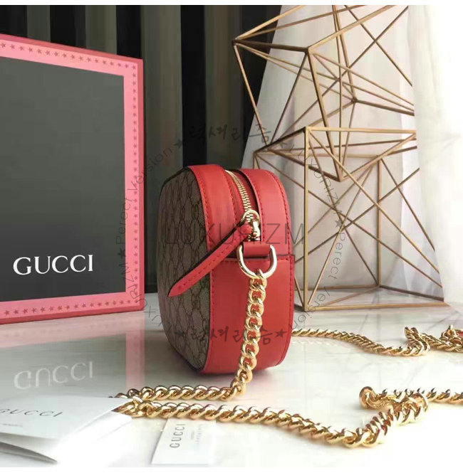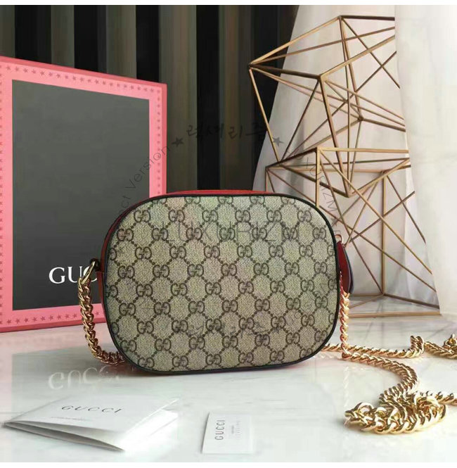 GUCCI-409535 8526 구찌 체인 숄더 스트랩 GG 수프림 캔버스 콤팩트 백 브라운