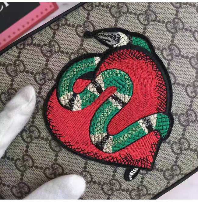 -2017 크루즈 컬렉션/베이지/에보니GG수프림 캔버스 히비스커스 레드 가죽 트리밍/내부 오픈 포켓.