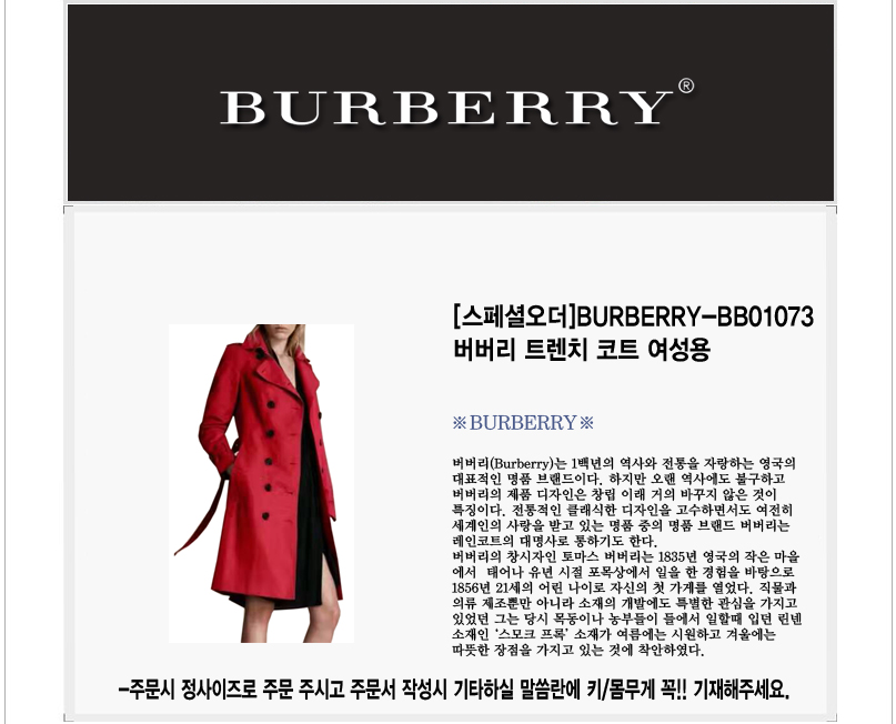 [스페셜오더]BURBERRY-BB01073 버버리 트렌치 코트 여성용