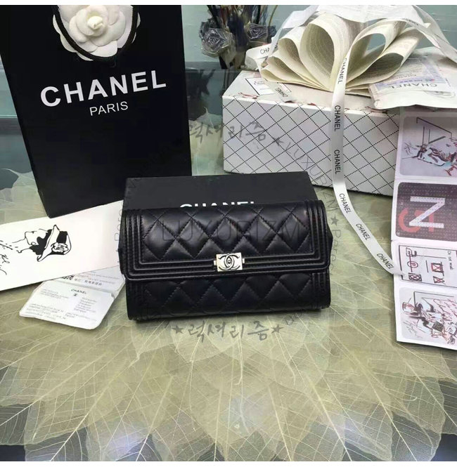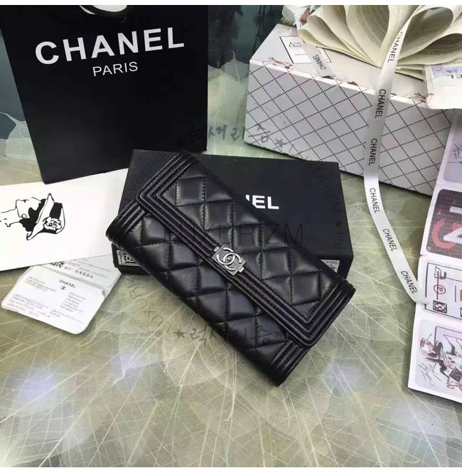 #홍콩짝퉁 샤넬 이미테이션 쇼핑몰 레플리카지갑A80286 샤넬 보이 램스킨 루테늄 메탈 플랩 지갑 블랙.