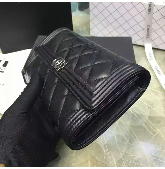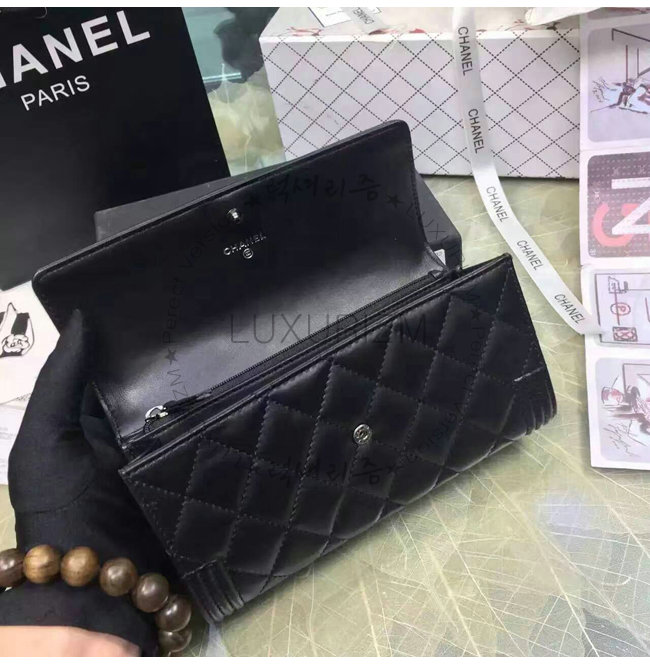 [스페셜오더]CHANEL-A80286 샤넬 보이 램스킨 루테늄 메탈 플랩 지갑 블랙