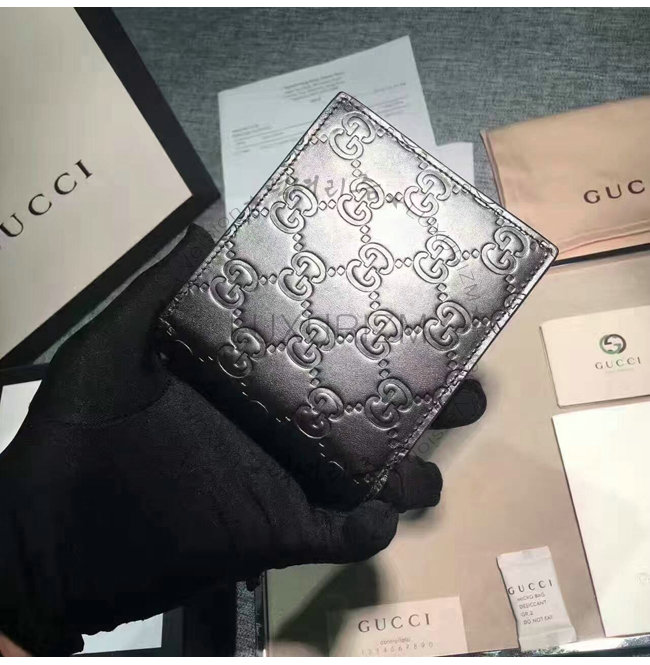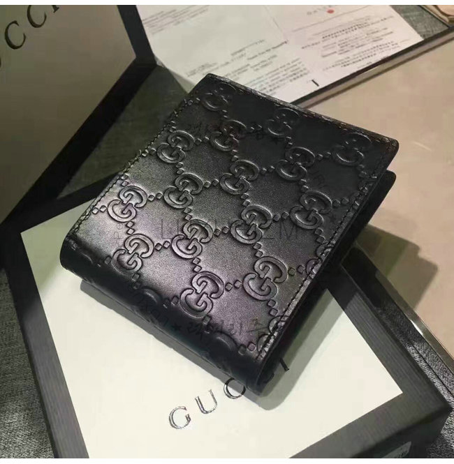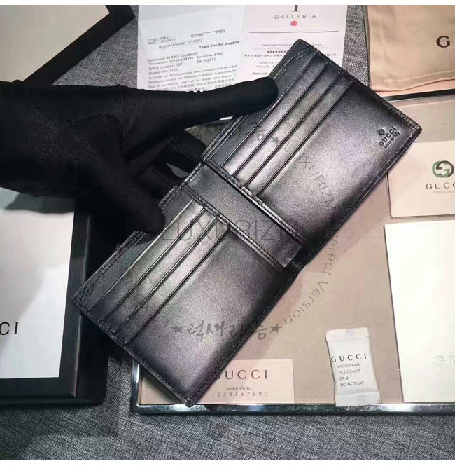 -2016 가을 겨울 컬렉션/6개의 카드 슬롯 및 2개의 지폐 컴파트먼트/구찌 시그니처 가죽 2단 지갑.