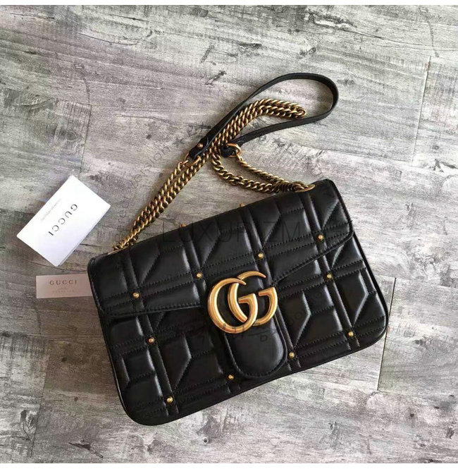 [스페셜오더]GUCCI-443496 1000 구찌 GG Marmont 마몽 마틀라세 미디엄 스트럭처드 체인 숄더백 블랙