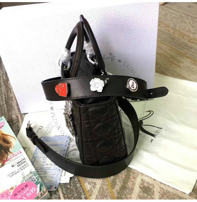 은장 블랙 양가죽 Lady Dior 백.