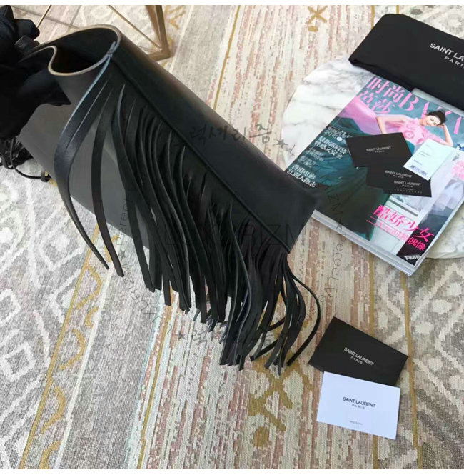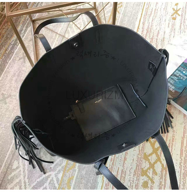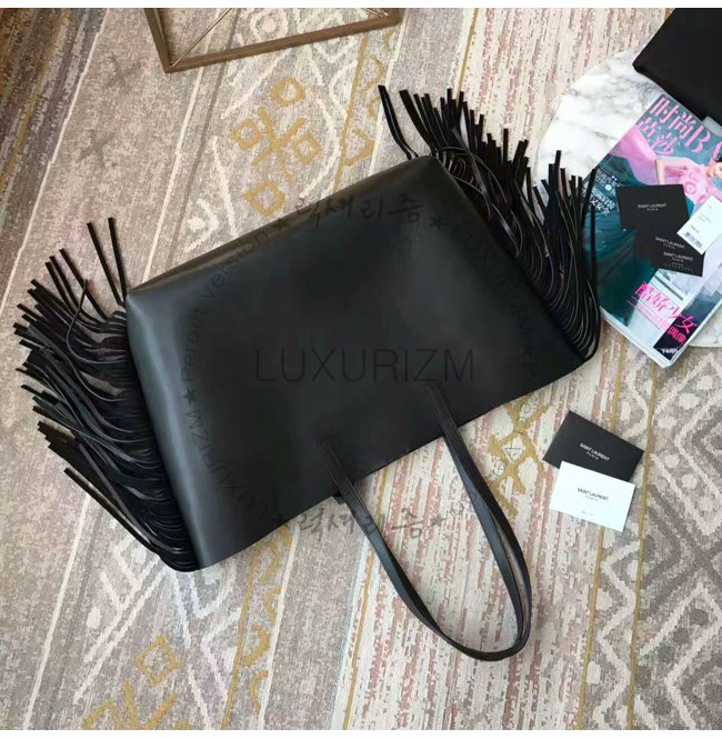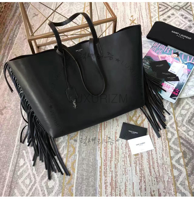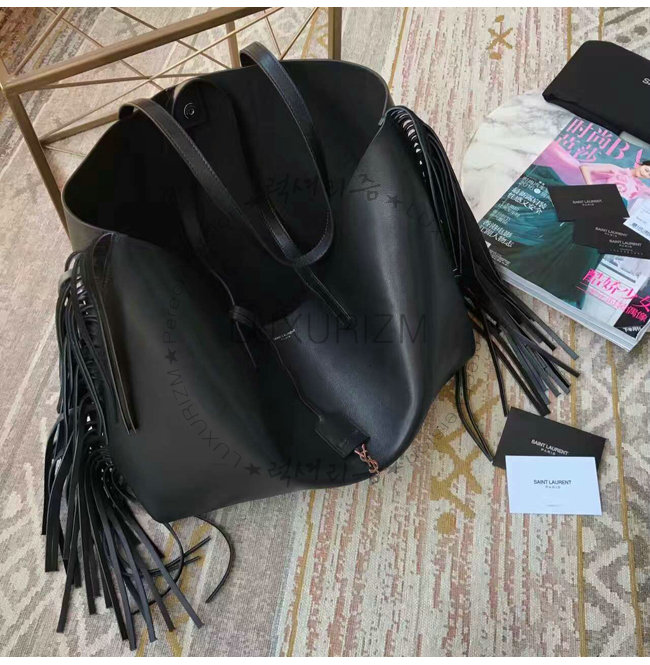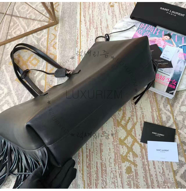 [스페셜오더]SAINT LAURENT-410666 생 로랑 블랙 가죽 라지 쇼핑 생 로랑 프린지 토트 백