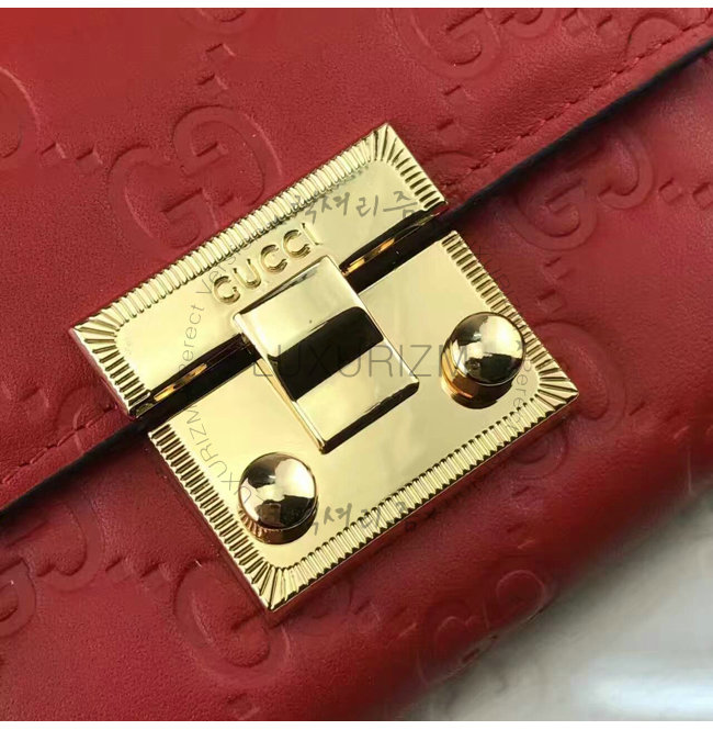 -히비스커스 레드 구찌 시그니처 가죽 골드톤 메탈 디테일
