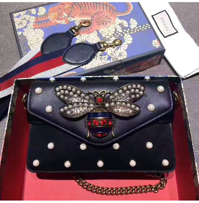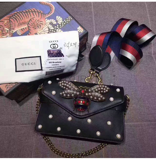 [스페셜오더]GUCCI-453778 1096 구찌 Broad way 브로드웨이 펄 장식 체인 클러치 숄더스트랩백 블랙