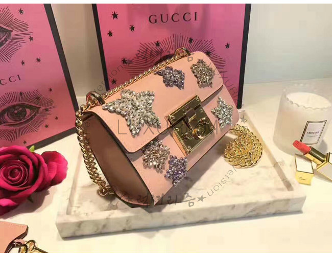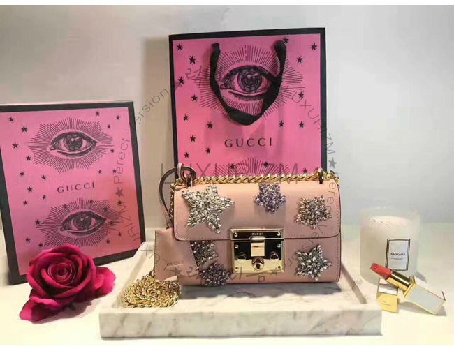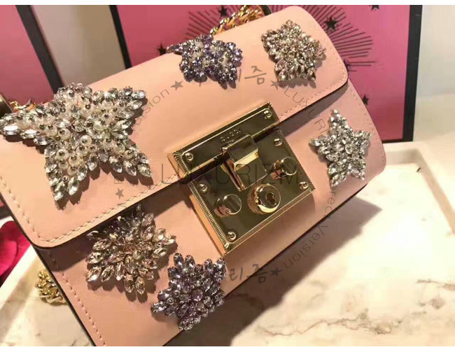 [스페셜오더]GUCCI-432182 5971 구찌 Pad lock 패드락 아플리케 스터드 스몰 체인 숄더백 핑크