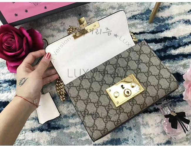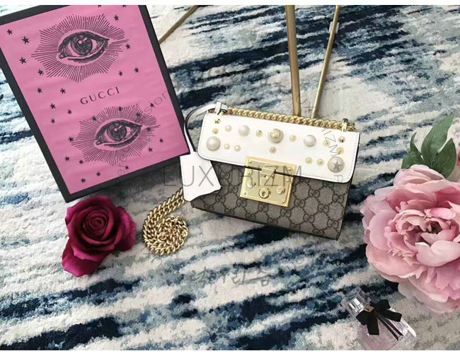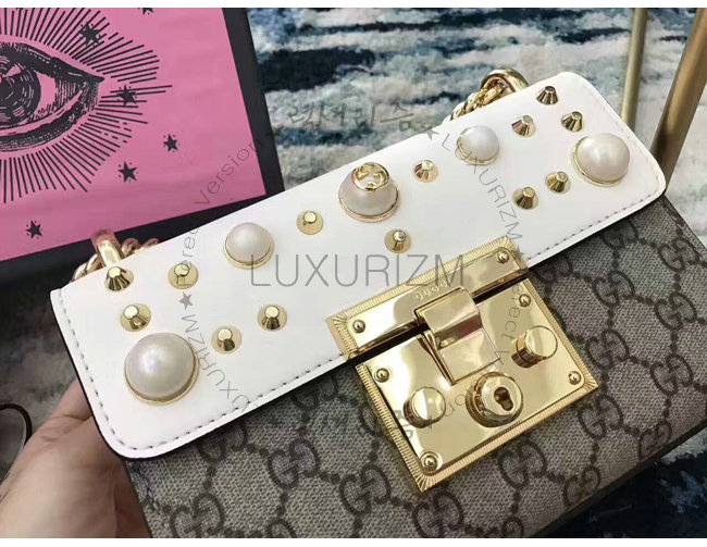 [스페셜오더]GUCCI-432182 8391 구찌 Pad lock 패드락 GG 수프림 펄 스터드 스몰 체인 숄더백 화이트