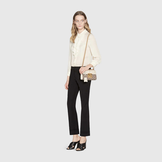패드락 GG 수프림 펄 스터드 스몰 체인 숄더백 화이트.
