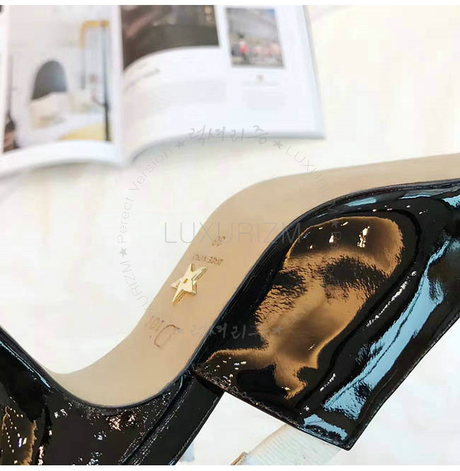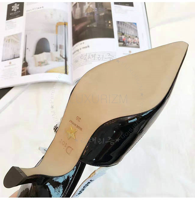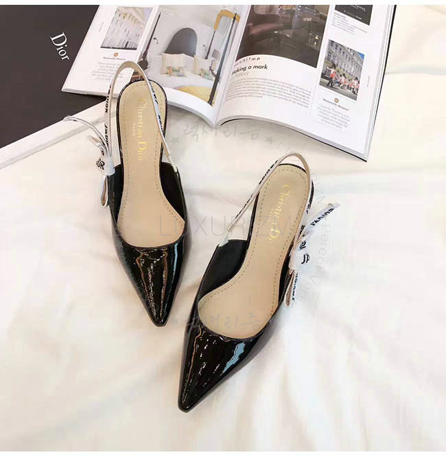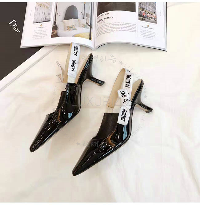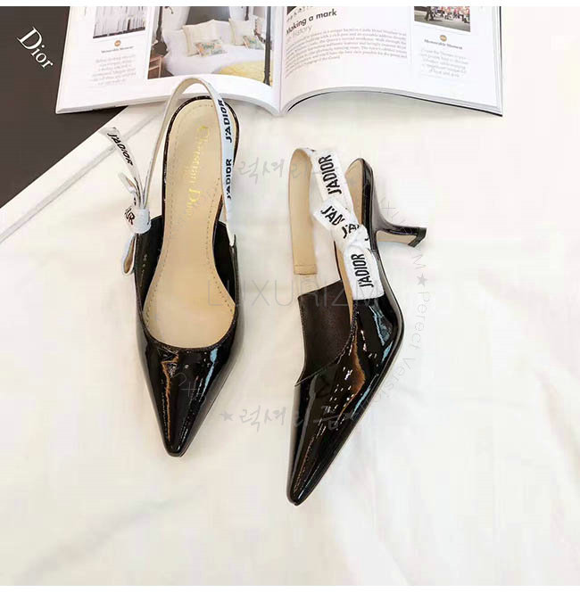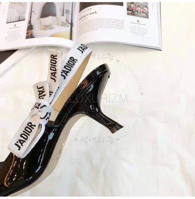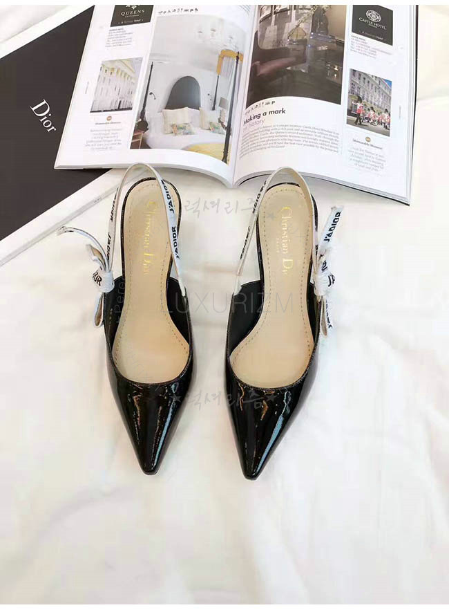 DIOR-C201 디올 리본 & 블랙 페이턴트 송아지 가죽 슬링 백