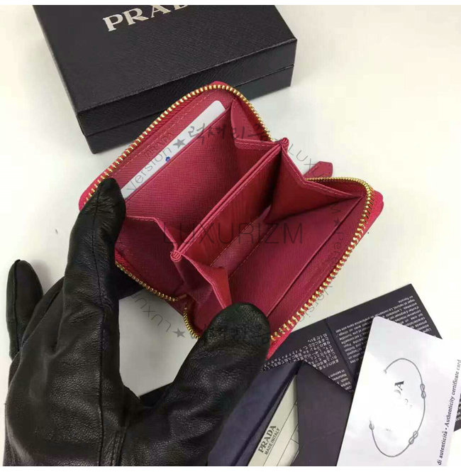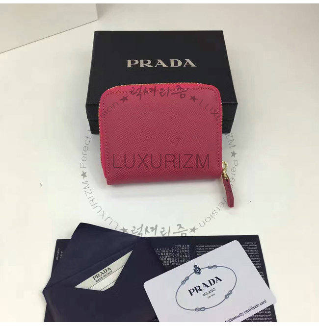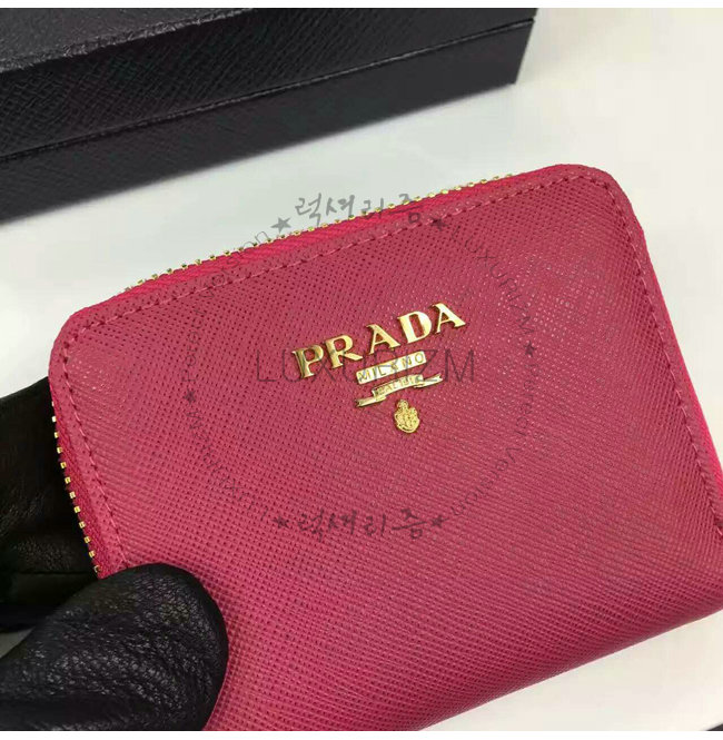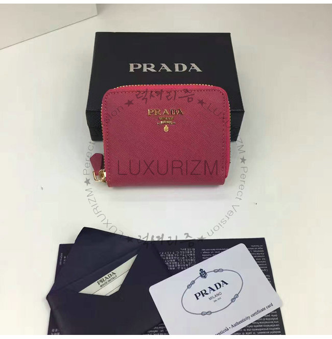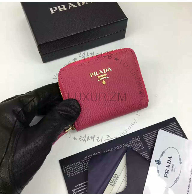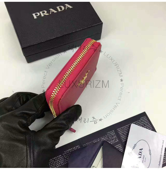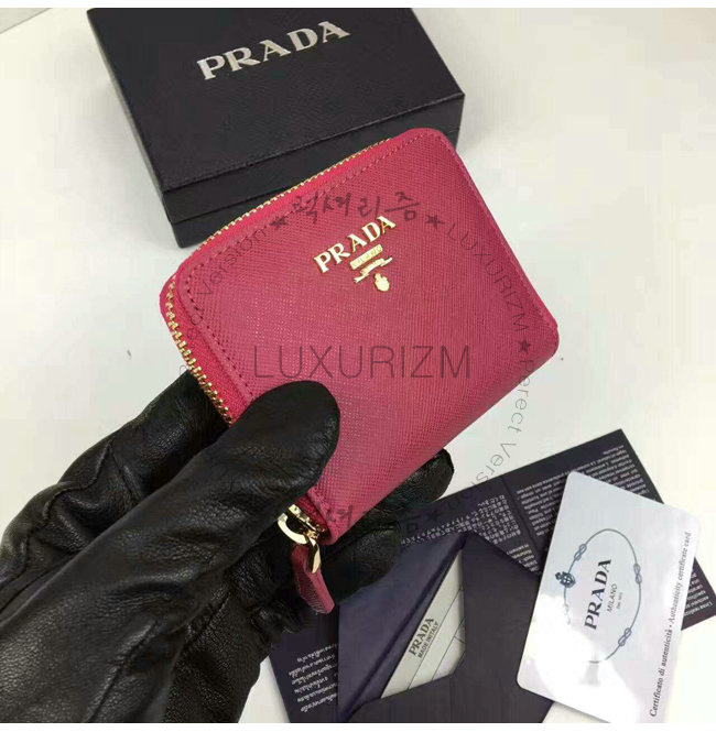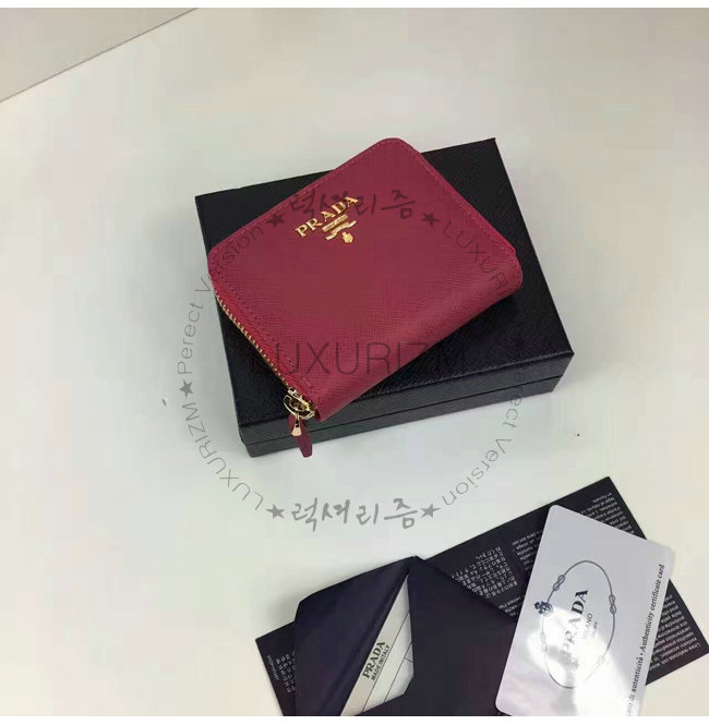 PRADA-1MM268 프라다 사피아노 메탈릭 골드 가죽 동전 지갑 레드
