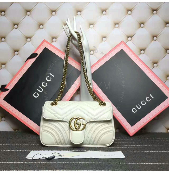 [스페셜오더]GUCCI-443497 9022 구찌 GG Marmont 마몽 마틀라세 스몰 체인 숄더 스트랩백 화이트