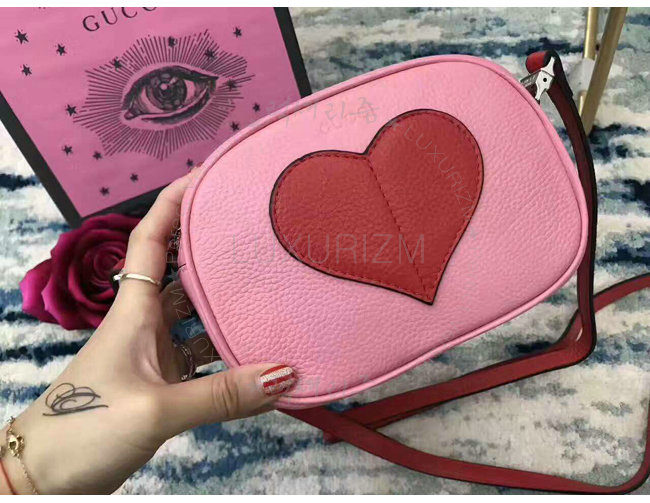 [스페셜오더]GUCCI-457223 5679 구찌 Childrens leather heart 하트 라이트 핑크 가죽 메신저 백