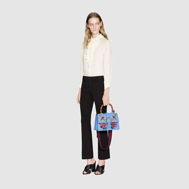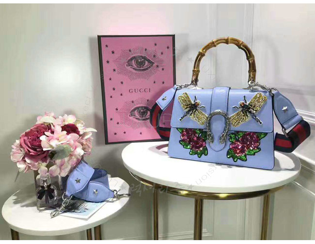 [스페셜오더]GUCCI-448075 4374 구찌 Dionysus embroidered 가죽 미디엄 밤부 탑 핸들 백