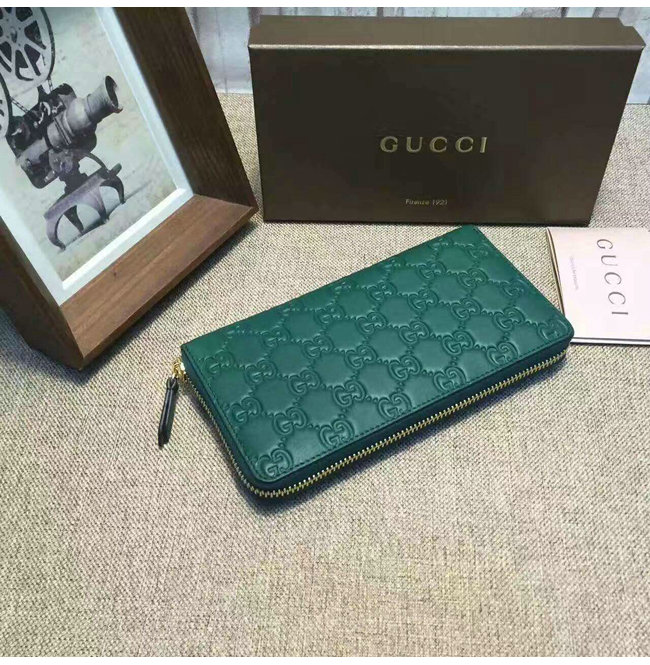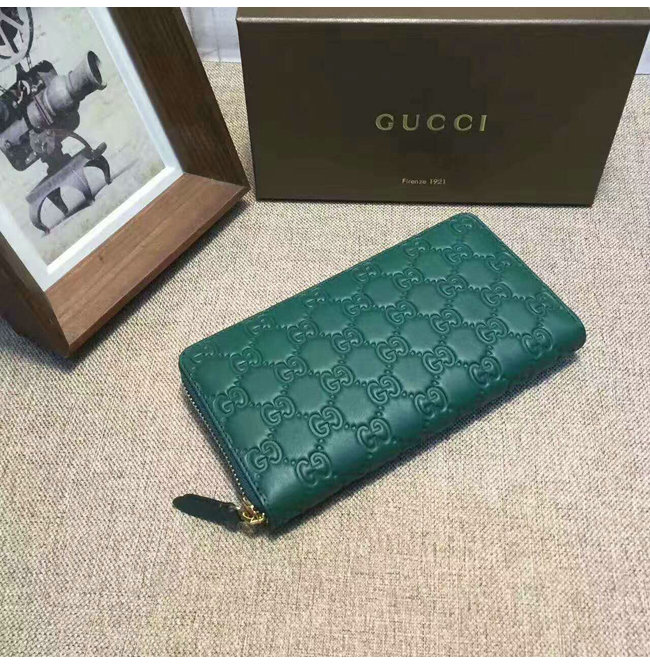 GUCCI-410102 3120 구찌 Linea A 시그니처 가죽 지퍼 장지갑 그린