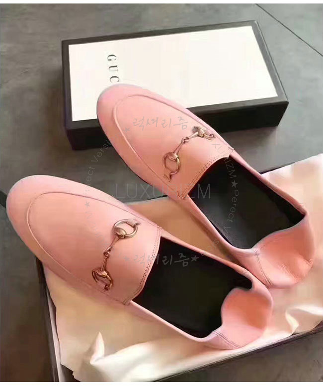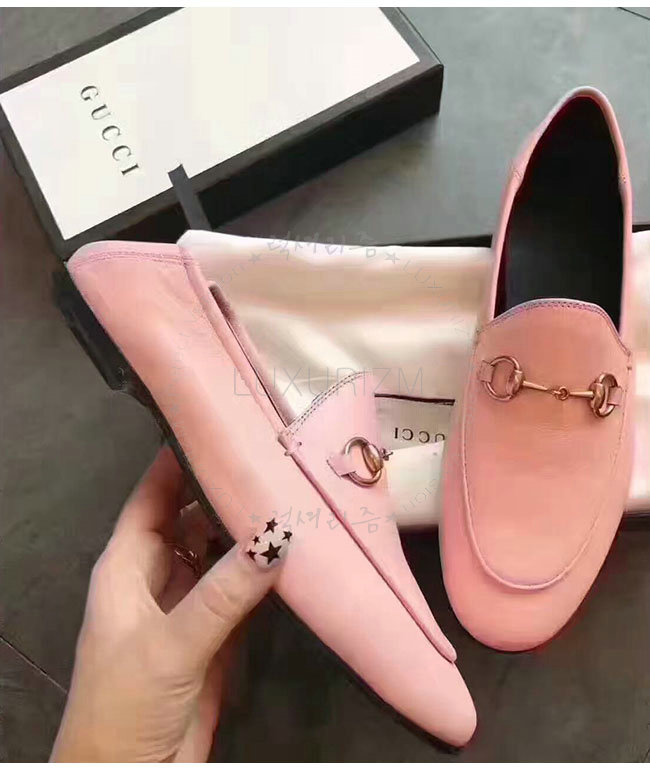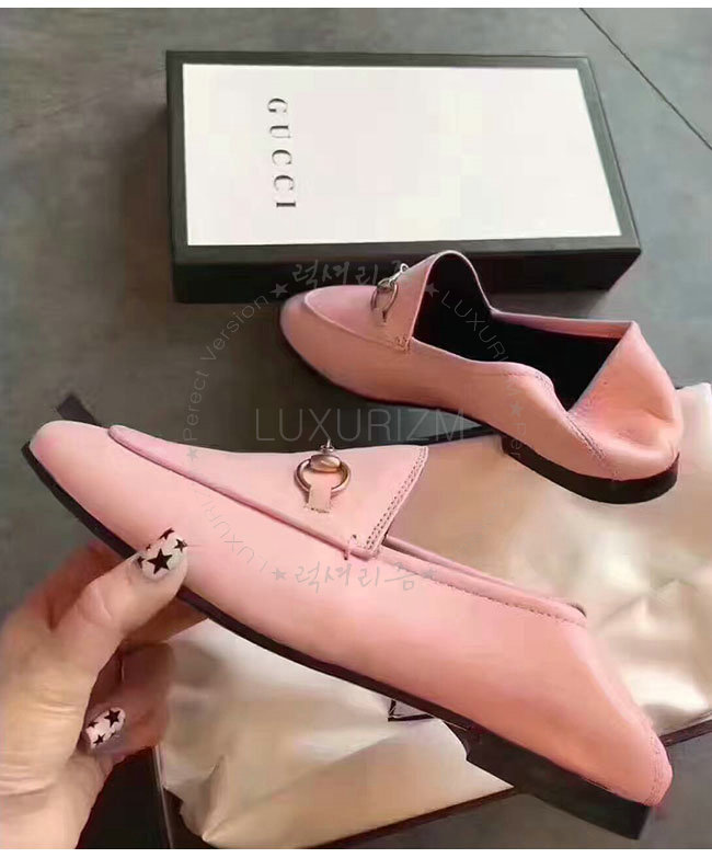 GUCCI-414998 5909 구찌 가죽 홀스빗 핑크 로퍼 여성용