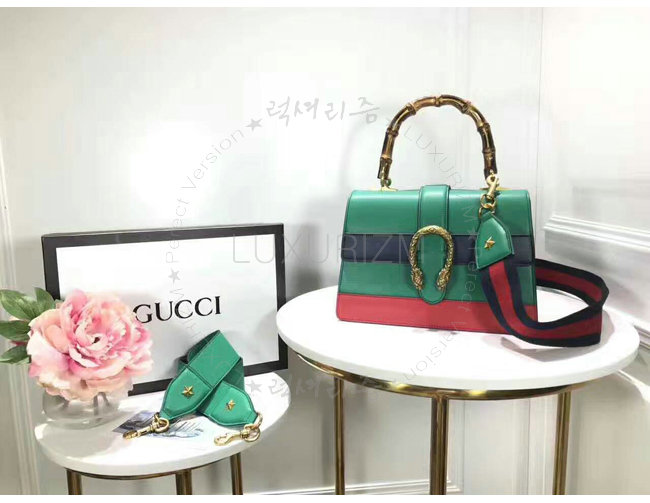 [스페셜오더]GUCCI-448075 8310 구찌 Dionysus 그린/블루/레드 가죽 미디엄 밤부 탑 핸들 백