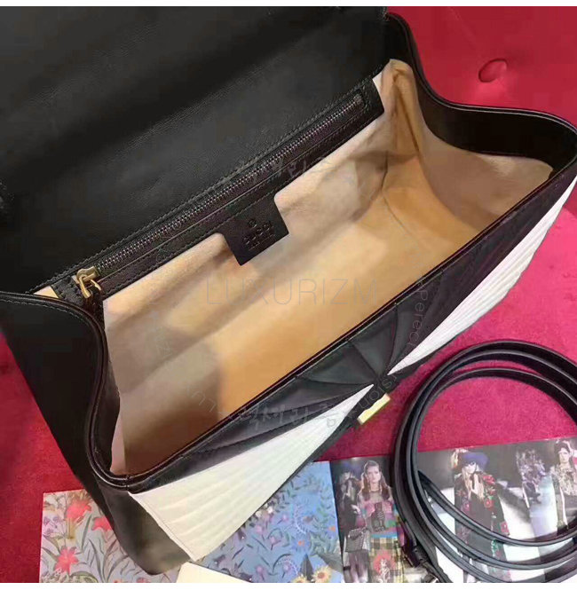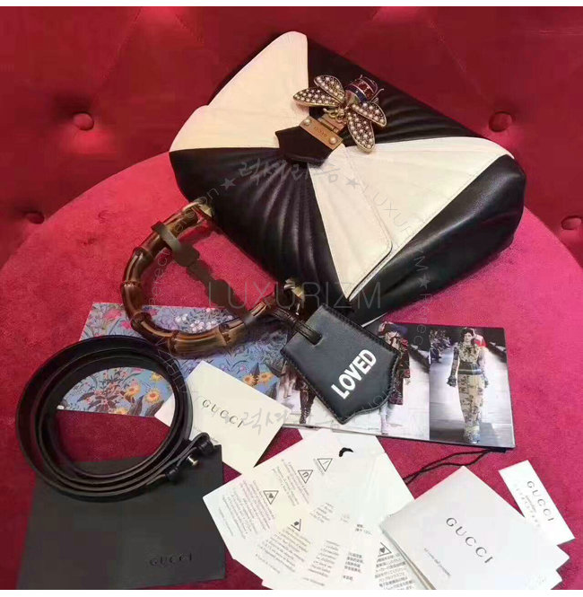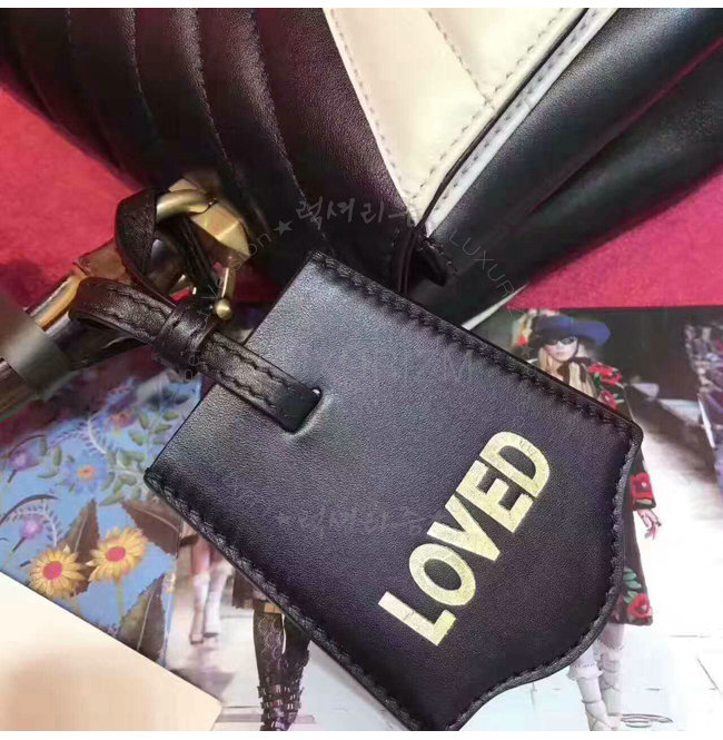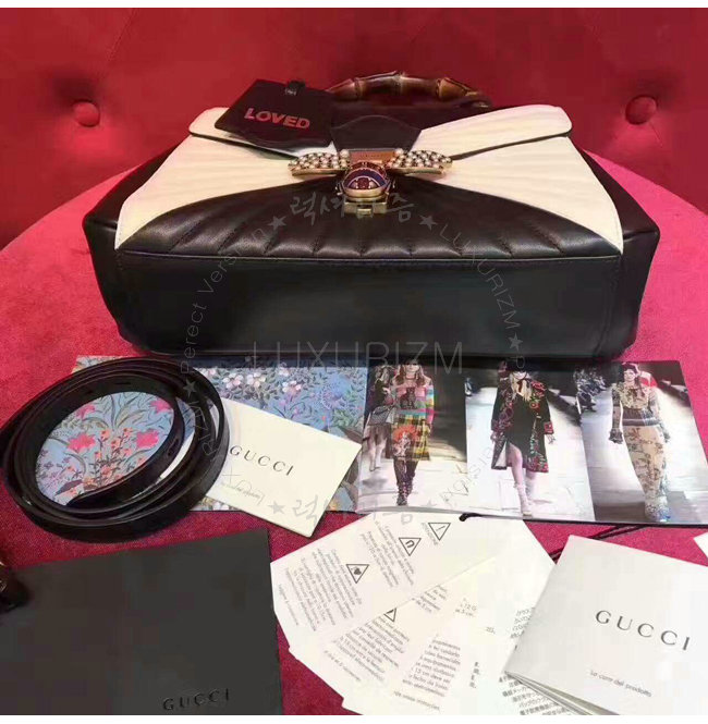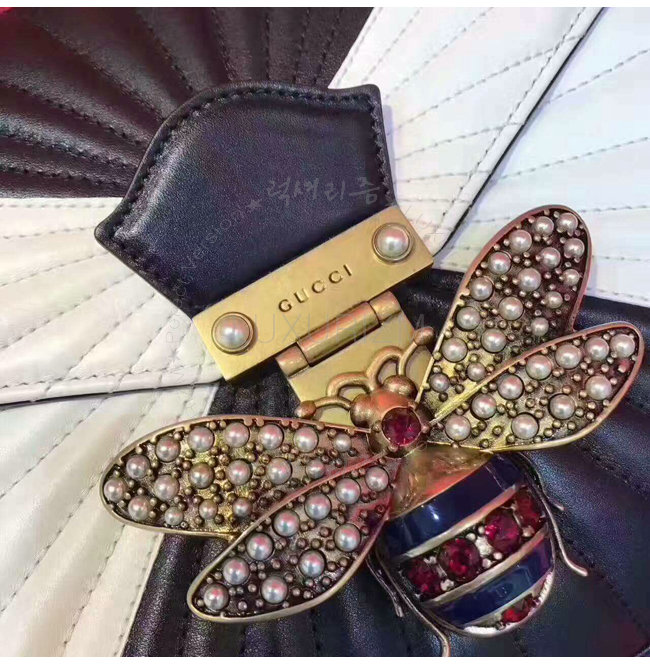 [스페셜오더]GUCCI-476531 8350 구찌 Queen Margaret 블랙 화이트 퀼트 가죽 탑 핸들 백