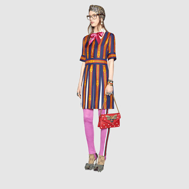 -2017 크루즈 컬렉션/레드 가죽 및 펄 장식/메탈 벌 장식의 펄 및 크리스탈 디테일/메탈 잠금장치.
