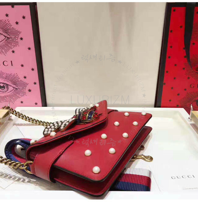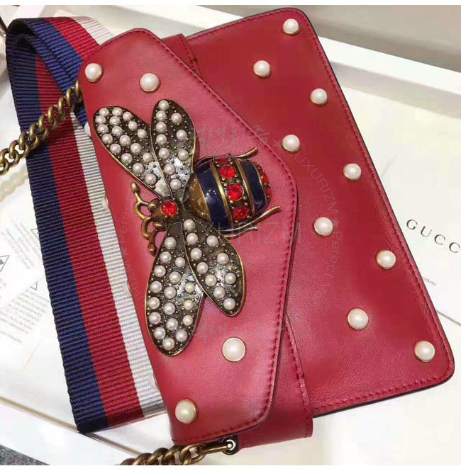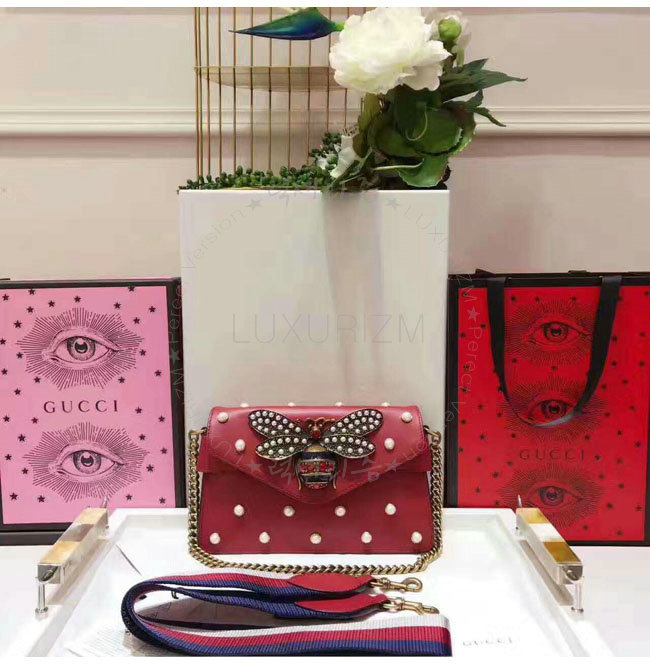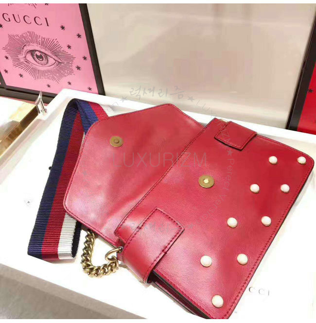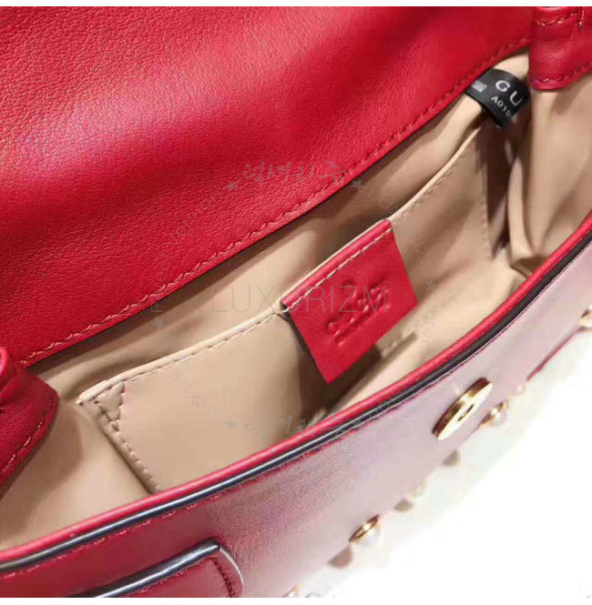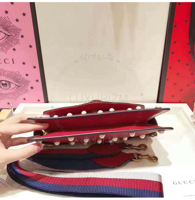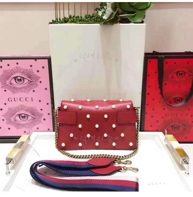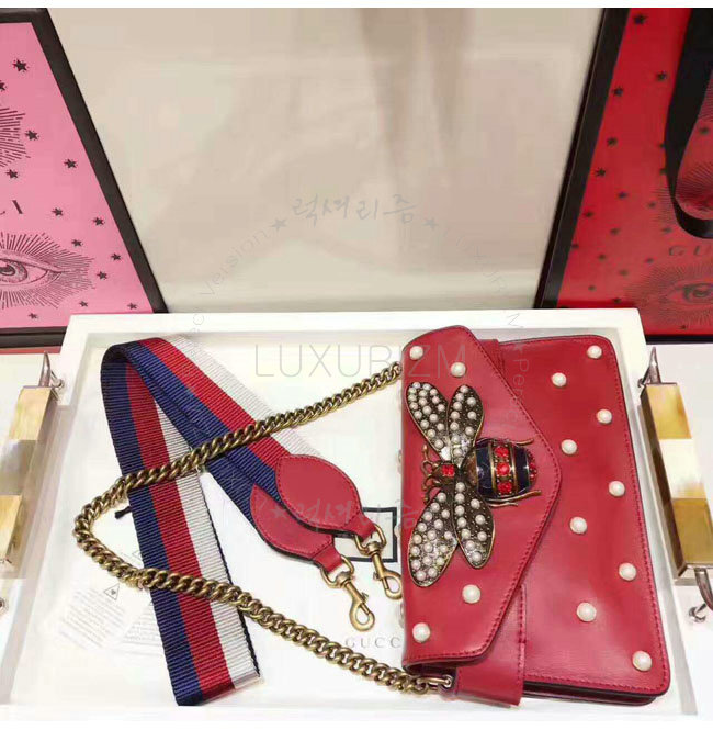 [스페셜오더]GUCCI-453778 8024 구찌 Broad way 브로드웨이 펄 장식 체인 클러치 숄더스트랩백 레드
