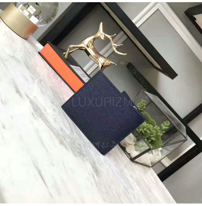 플랫 포켓2개.신분증 사진수납용 투명창 십자 결을살린 송아 가죽 내피 은색 금속장식.