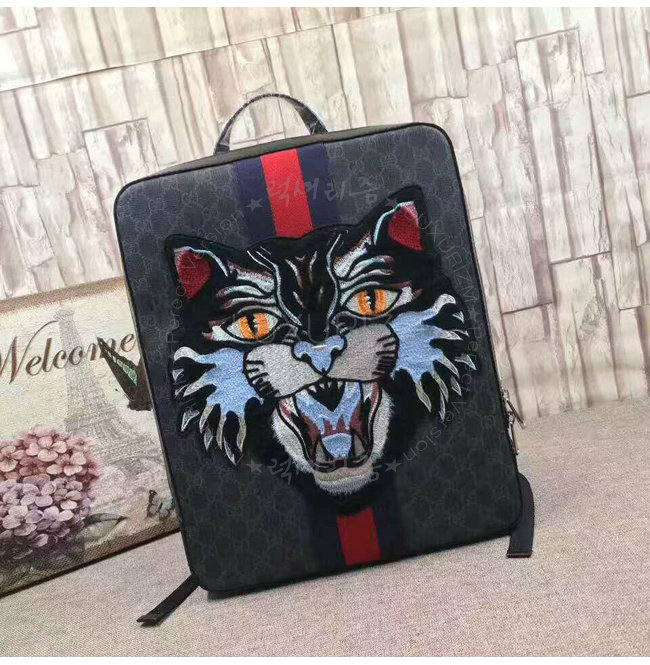 [스페셜오더]GUCCI-478324 8849 구찌 GG Black 그레이 GG 수프림 앵그리 캣 자수 백팩