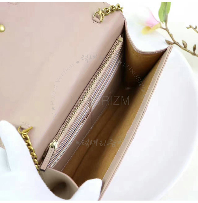 누드 마틀라세 가죽 골드톤 하드웨어 카드슬롯 및 지퍼포켓.