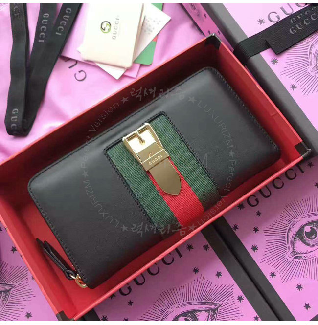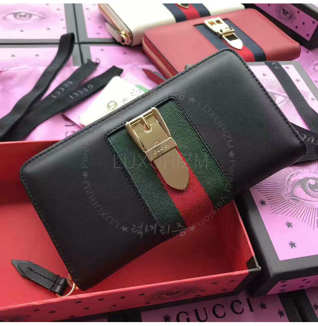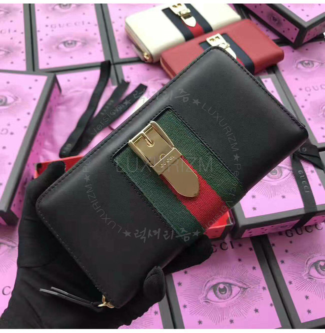 [스페셜오더]GUCCI-476083 1060 구찌 Sylvie 레더 집 어라운 월릿 블랙